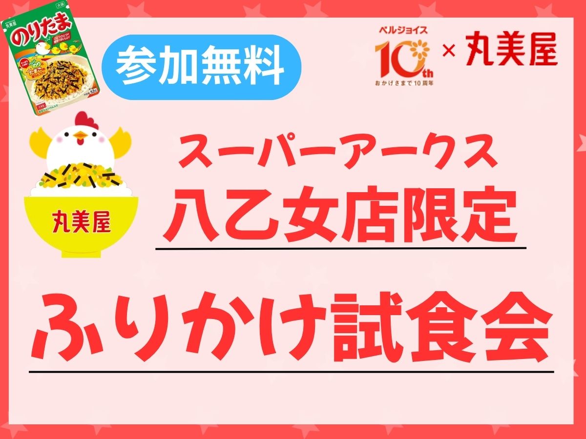 【参加無料】あなたの推し「ふりかけ」はどれ!?「丸美屋 ふりかけ試食会」を実施いたします。丸美屋さんのふりかけ14種類の中から気になるふりかけを選んで実際に試食が出来ます!【実施店舗】スーパーアークス八乙女店【実施日時】①2026年4月4日(土)10:00~16:00②2026年4月5日(日)10:00~16:00皆さまのお越しを心よりお待ちしております。